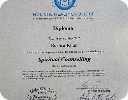 After losing her mother and family fortune, Bushra sought balance through meditation and yoga. She later pursued self-discovery through energy healing, Sufism, and sacred pilgrimages.